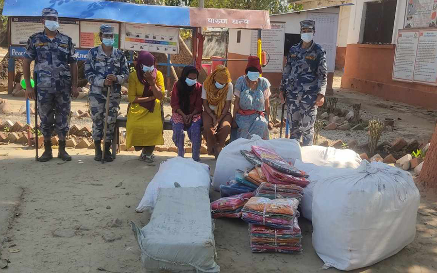 सामान ओसारपसारमा संलग्न धनगढी उपमहानगरपालिका–२ पुरानो भन्सार रोड बस्ने महेश्वरी बिष्ट, तुलसी भट्ट, धना साउद र गौरी ओझालाई नियन्त्रणमा लिइएको सशस्त्र प्रहरी बल नेपाल नम्बर ३४ गणका सशस्त्र प्रहरी नायब उपरीक्षक(डीएसपी) खेम ठकुल्लाले बताए ।