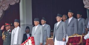 काठमाडौं– काठमाडौंको टुँडिखेलस्थित सैनिकमञ्चमा विशेष समारोह आयोजना गरी गणतन्त्र दिवस मनाइएको छ । समारोहमा राष्ट्रपति रामचन्द्र पौडेल, उपराष्ट्रपति रामसहाय यादव, प्रधानमन्त्री पुष्पकमल दाहाल प्रचण्ड, प्रधानन्यायाधीश विश्वम्भर प्रसाद श्रेष्ठ, सभामुख देवराज घिमिरे, राष्ट्रिय सभा अध्यक्ष नारायण दाहाल लगायत विशिष्ट व्यक्तिहरुको सहभागिता थियो ।