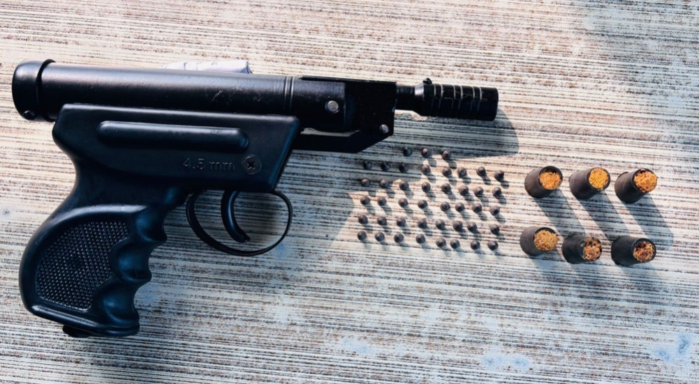कम्मरमा लुकाइछिपाइ राखेको अवस्थामा कालो रंगको ४.५ मिलिमिटर क्यालिबरको डेन्जर टोय एयर पेस्तोलसहित उनलाई इलाका प्रहरी कार्यालय, पकडीको टोलीले मंगलबार पक्राउ गरेको हो । पेस्तोलसँगै त्यसमा लाग्ने ४३ थान छर्रा, पेस्तोलमा प्रयोग हुने ६ थान धमाका र एक थान मोबाइल पनि बरामद गरिएको छ ।