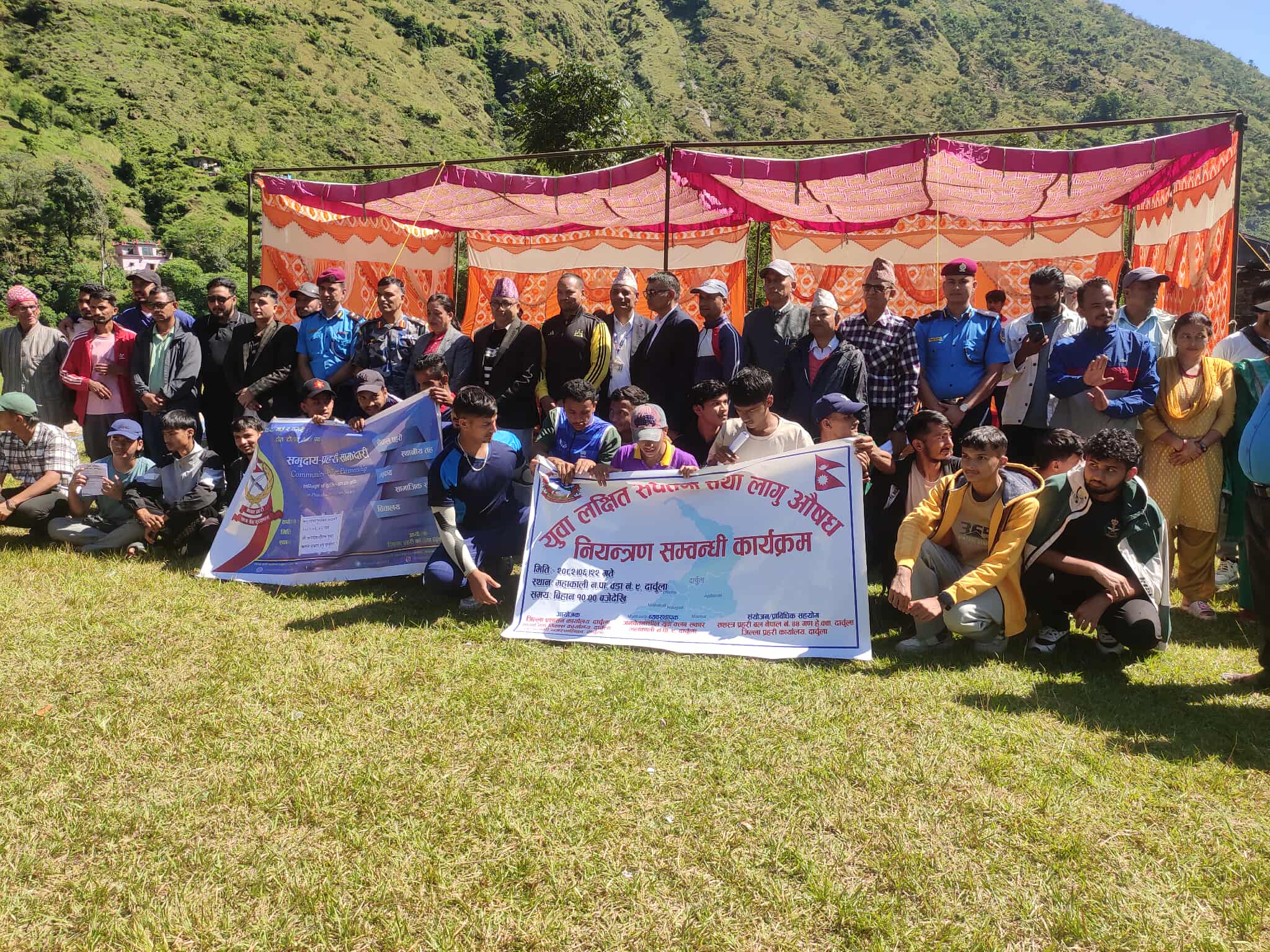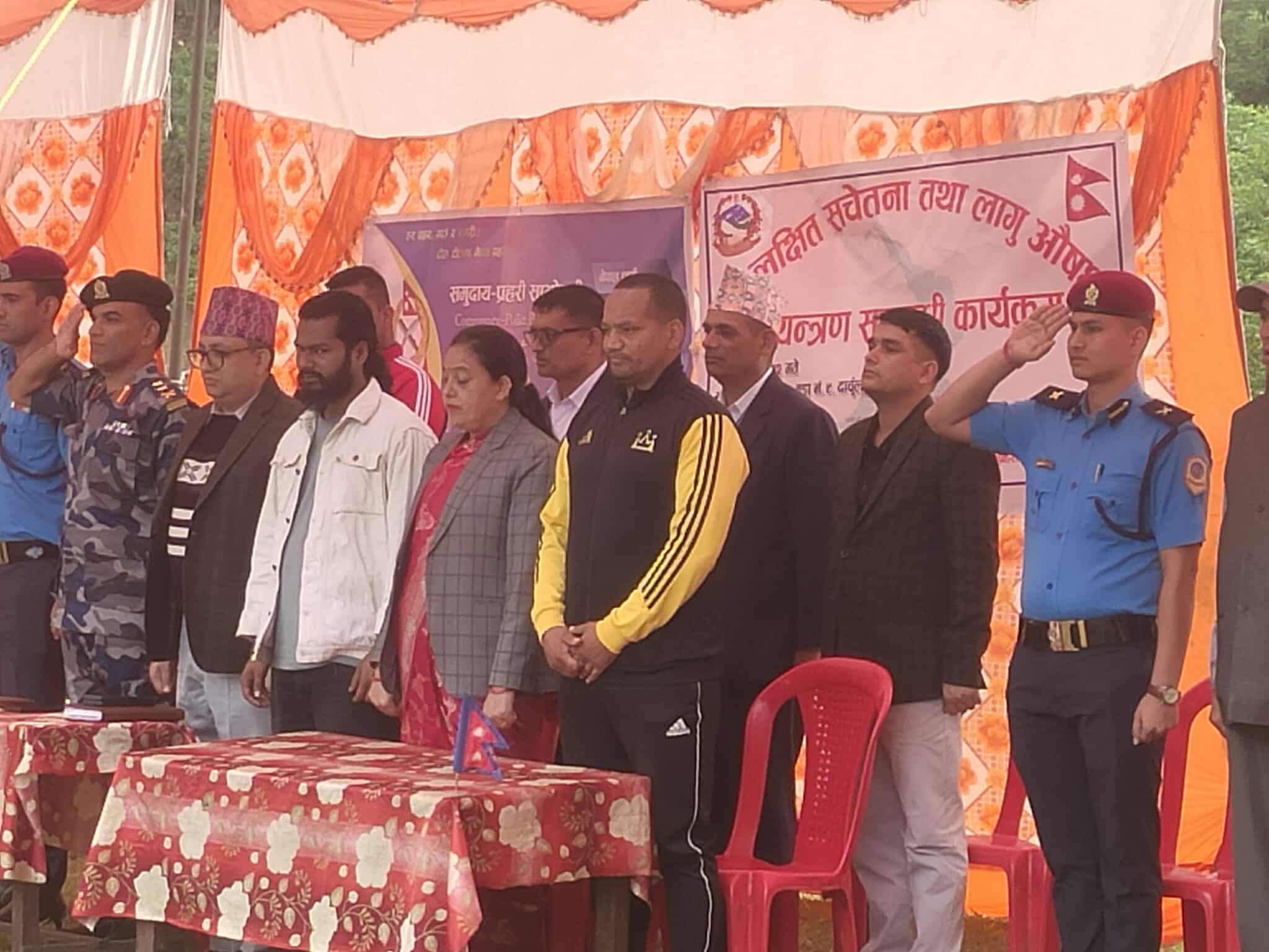 जिल्ला प्रशासन कार्यालय,सामाजिक विकास कार्यालय, र महाकाली नगरपालिकाको आयोजना तथा सशस्त्र प्रहरी बल नेपाल नं ४४ गण हेडक्वाटर दार्चुला, जिल्ला प्रहरी कार्यालय दार्चुलाको समन्वय प्राविधिक सहयोग र जनचेतनाशील युवा क्लबको व्यवस्थापनमा सचेतना तथा लागु औषध नियन्त्रण सम्बन्धी कार्यक्रम सम्पन्न भएको प्रशासन कार्यालय दार्चुलाले जनाएको छ । सुरक्षा समिति संयोजक तथा प्रमुख जिल्ला अधिकारी अनिल पौडेलको प्रमुख आर्थित्यतामा कार्यक्रम सम्पन्न भएको आयोजकले जनाएको छ ।