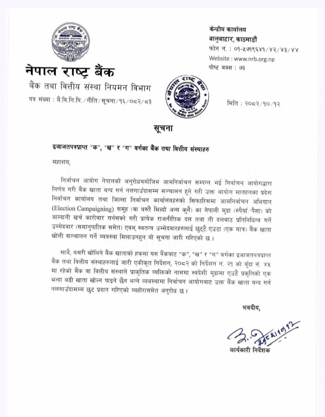 बैंकमा खाता खोल्दा उम्मेदवारको तर्फबाट जिम्मेवार पदाधिकारी तोक्नु पर्ने