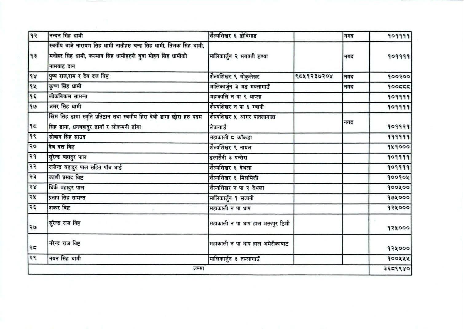 यहाँ हेर्नुस् एक लाख भन्दा माथि दान गर्ने दाताहरुको नामावली