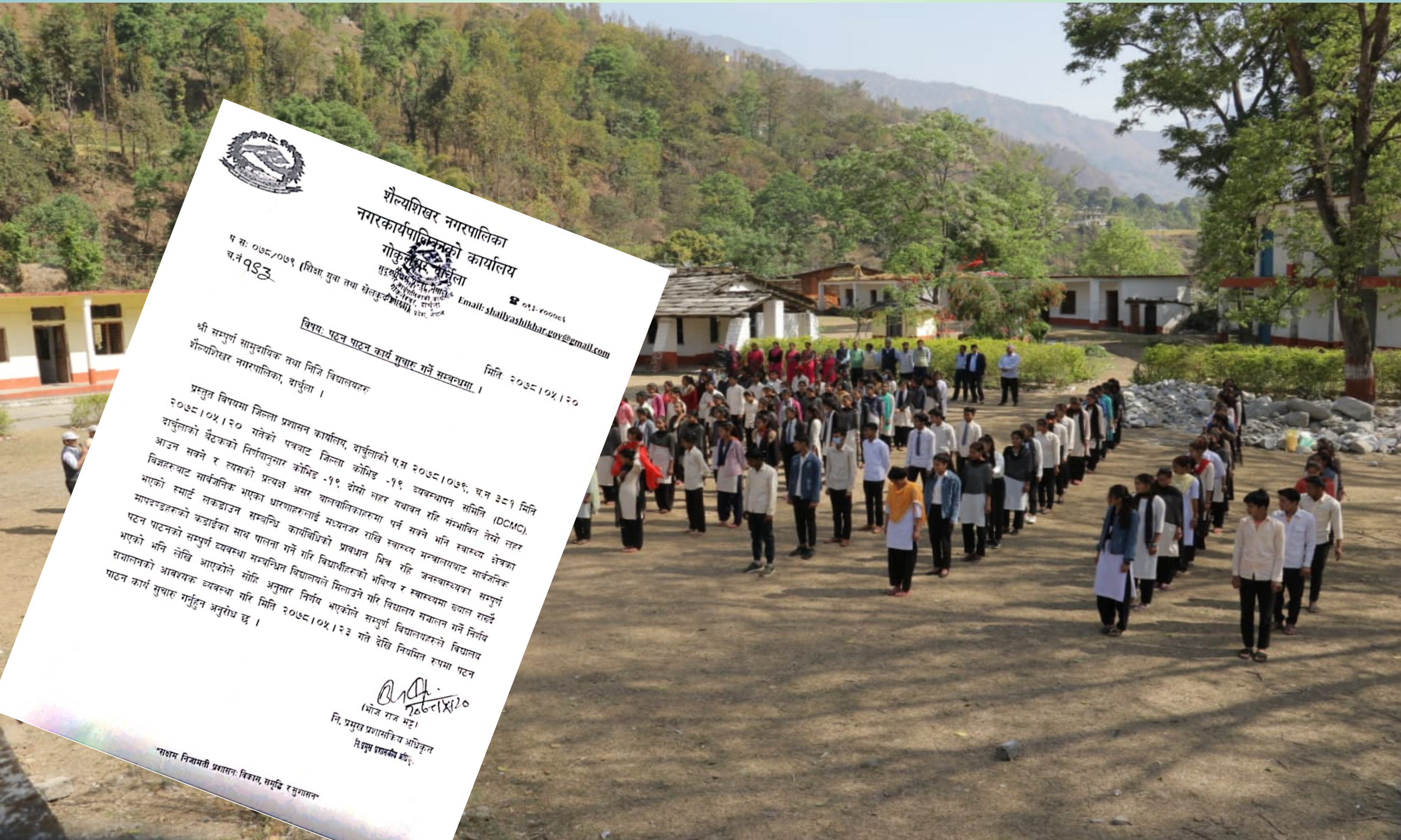 कोभिड – १९ व्यवस्थापन समिति दार्चुलाले भदौ २० गते जोखिम हेरेर विद्यालय संचालन गर्न स्थानीय तहहरूलाई जिम्मा दिएसङ्गै शैल्यशिखर नगरपालिकाले पनि सार्वजनिक सूचना जारी गरि आउदो भदौ २३ गते देखि जनस्वास्थ्यका मापदण्डको पालनासहित पठनपाठनको व्यवस्था मिलाउन नगरपालिकाभरिका सरकारी तथा निजि विद्यालयहरूलाई आग्रह गरेको शैल्यशिखर नगरपालिकाका निमित्त प्रमुख प्रशासकीय अधिकृत भोजराज भट्टले जानकारी दिनुभयो ।